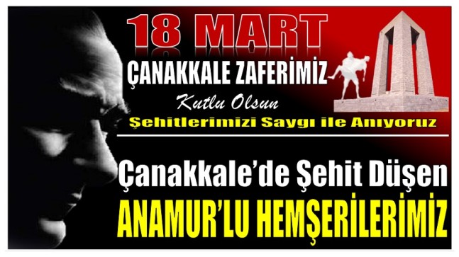 ÇANAKKALE’DE ŞEHİT DÜŞEN ANAMURLULAR ; Köyleri ve Diğer Bilgileri