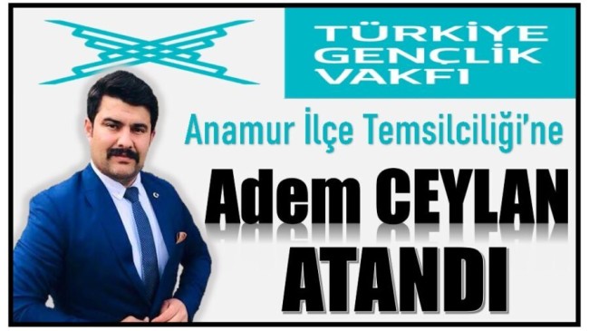 TÜRKİYE Gençlik Vakfı Anamur ilçe temsilciliğine Adem CEYLAN atandı.